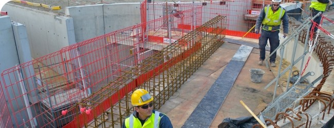 Les travaux sont déjà bien entamés puisqu’ils ont commencé en juin de cette année. La réalisation des bassins tampons est d’ailleurs en passe d’être terminée. « Nous montons désormais en puissance sur les ouvrages de rejet, pour l’eau de la centrale nucléaire et pour le GNL. En cas de nécessité absolue, il faut, en effet, prévoir une solution de rejet vers la mer du GNL, après son stockage en zone tampon », commente Antoine Marchandise. « Nous sommes actuellement occupés à réaliser les déversoirs pour le GNL et pour l’eau ». Ces travaux, qui mobilisent une vingtaine de personnes, devraient s’achever fin janvier 2015. Ils demandent une grande technicité. Il a fallu, par exemple, réaliser de délicats rabattements de nappe phréatique avant de pouvoir commencer les travaux de terrassement des bassins. La construction des déversoirs va également obliger à des manœuvres difficiles : enlever des enrochements de la digue, mettre des protections, construire les déversoirs et enfin remettre les enrochements tout en respectant scrupuleusement le profil de la digue.
