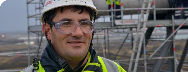 Patricio Martins est un habitué des grands travaux. Chef d’équipe chez Prezioso, il gère le montage des échafaudages sur les très gros chantiers. Depuis 1997, il a déjà travaillé dans toute la France, en Belgique, aux Pays-Bas ou encore en Norvège. « Souvent, on part pour au moins 5 ou 6 mois », précise-t-il. « Ici, à Loon-Plage, c’est encore une autre dimension puisque je suis arrivé il y a déjà 10 mois. Originaire de Fatima dans le centre du Portugal, Patricio Martins dit ne pas connaître la routine. Il a deux collègues chefs d’équipe. A trois, ils gèrent une trentaine de salariés, spécialisés dans le montage des échafaudages. « Nous travaillons sur les trois réservoirs en même temps. Ca fait un chef d’équipe par réservoir et pour une dizaine de bonhommes », commente-il. « En ce moment, nous sommes occupés à monter des échafaudages sur les plateformes en haut des cuves, afin que les confrères puissent souder en sécurité toute la tuyauterie, puis l’isoler ». Un travail difficile qui demande énormément de rigueur et le respecter de consignes de sécurité extrêmement strictes. « Le matériel est acheminé là-haut par monte-charge. Il faut ensuite le décharger. Nous sommes continuellement rattachés par un système de baudrier. Lorsque nous nous déplaçons, nous utilisons une double-longe qui nous assure toujours un point d’attache », détaille Patricio Martins, pour qui la peur du vide n’est pas un problème. « C’est une question d’habitude. Je ne dis pas que la première fois que j’ai monté un échafaudage à plusieurs dizaines de mètres de hauteur, je n’ai pas eu d’appréhension. Mais désormais, je travaille en hauteur comme sur le sol, sans aucune angoisse. Et heureusement !», conclut-il en riant.